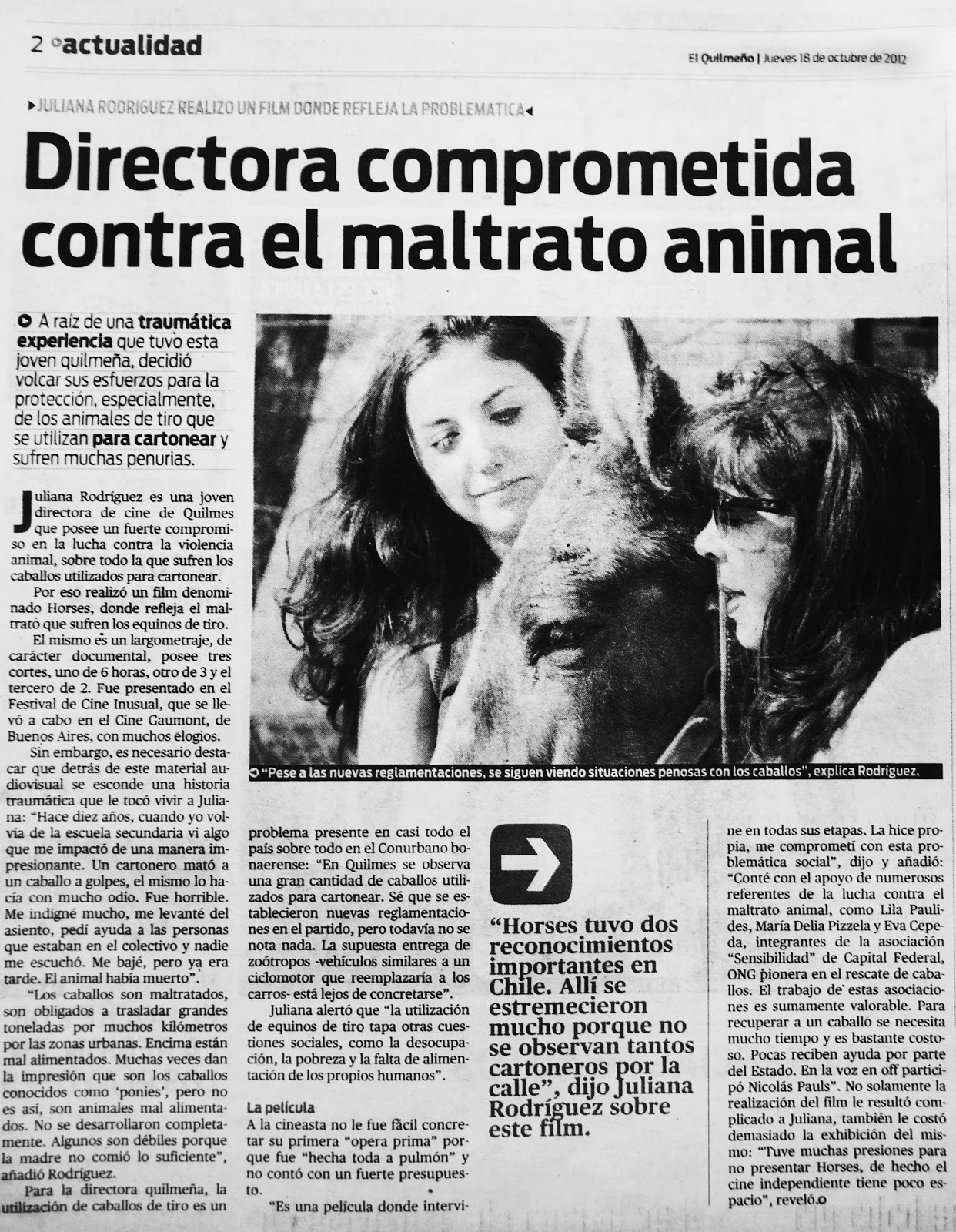 2012-10-18 "Horses" en Diario Popular El Quilmeño.